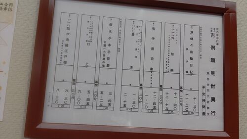 京の年中行事當る辰歳吉例顔見世興行東西合同大歌舞伎 市川海老蔵改め十三代目市川團十郎白猿襲名披露 八代目市川新之助初舞台 昼の部 第一、双蝶々曲輪日記(ふたつちょうちょうくるわにっき) 角力場 濡髪長五郎 放駒長吉 平岡郷左衛門 三原有右衛門 茶亭…