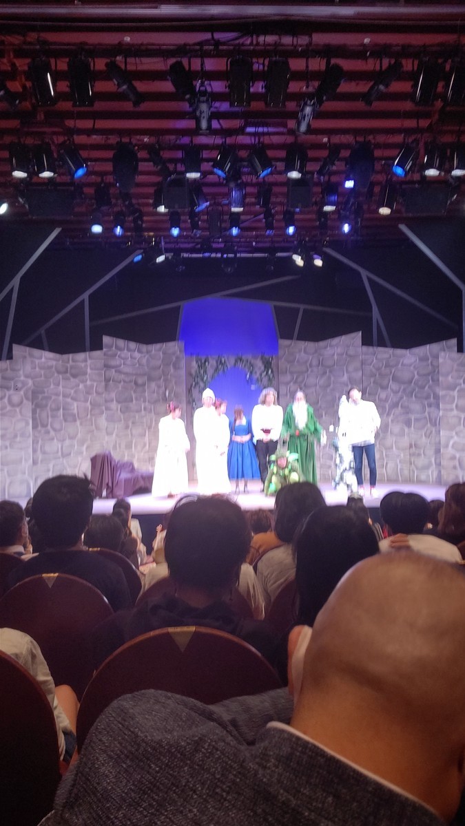 特にこの作品では場面転換ごとに暗転の時にナレーター役の男が登場。座敷席の子供たちとやりとりしながら、物語を進行した。実はこの役は原作にはないもので、場面転換の多いこの作品を子供たちに飽きさせずに見せるための工夫のようだが、こういう気配りもこどもステージのノウハウのひとつだ。特に今回はコロナ禍の上演で子供を含めて観客全員がマスクをする代わりに子供たちを中心に限度を超えない多少の声出しは許容されていて、この日はそういうことはいっさいなかったけれど、興奮した子供がマスクを外して叫びだすようなことがあっても、彼が舞台わきの子供たちのすぐそばにいることで即座に対処ができるという役割も担っているようだ。こういう役割を設けるようになったのはこうした暗転を多用する舞台では当初は舞台上が暗くなると怖くなって泣き出してしまう子供もいたことへの対策という側面もあったようだ。